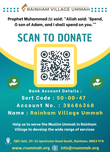 The Rainham Village Ummah (RVU) is totally self financing. RVU receives no grants or income from any external body.