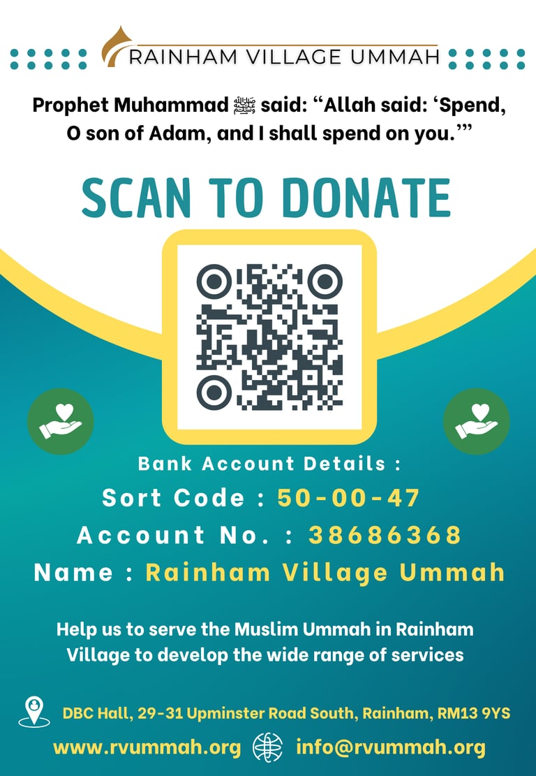 Donate generously online using your online internet banking / banking app, transfer to Rainham Village Ummah Bank Account.